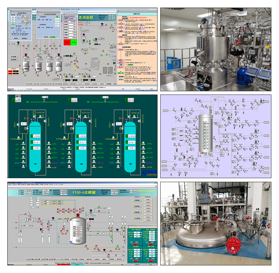 通過對(duì)發(fā)酵流程中實(shí)消、空消、保壓、移種、倒種、放料等單元實(shí)現(xiàn)一鍵自動(dòng)化;并結(jié)合對(duì)發(fā)酵過程中常規(guī)各類參數(shù)和部分生化參數(shù)進(jìn)行檢測(cè)和控制,有效地提高發(fā)酵單位和提升產(chǎn)品質(zhì)量。