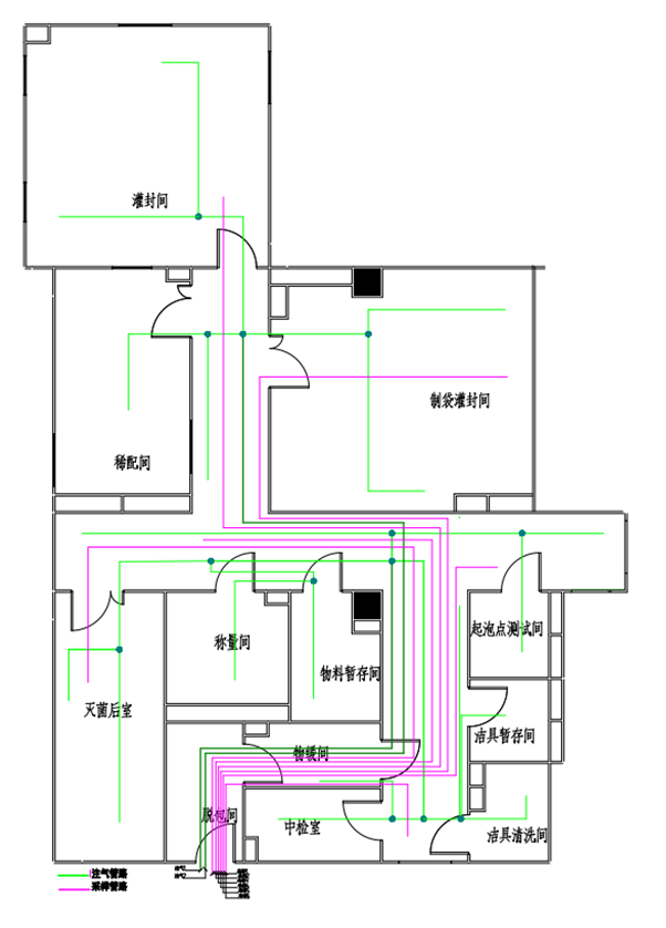 u 消毒空間:灌封間、稀配間、制袋灌封間、滅菌后室、稱量間、物料暫存間、物緩間、中檢室、起泡點(diǎn)測(cè)試間、潔具暫存間、潔具清洗間、走廊等;