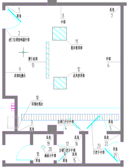u 消毒結(jié)果:在模擬實(shí)驗(yàn)室某整體循環(huán)系統(tǒng)終末消毒情況下,對(duì)整體空間進(jìn)行消毒測(cè)試,采用枯草黑色變種芽孢桿菌進(jìn)行消毒測(cè)試效果驗(yàn)證,所有挑戰(zhàn)位點(diǎn)的生物指示劑全部被殺滅,滿足實(shí)驗(yàn)室運(yùn)行的需求。